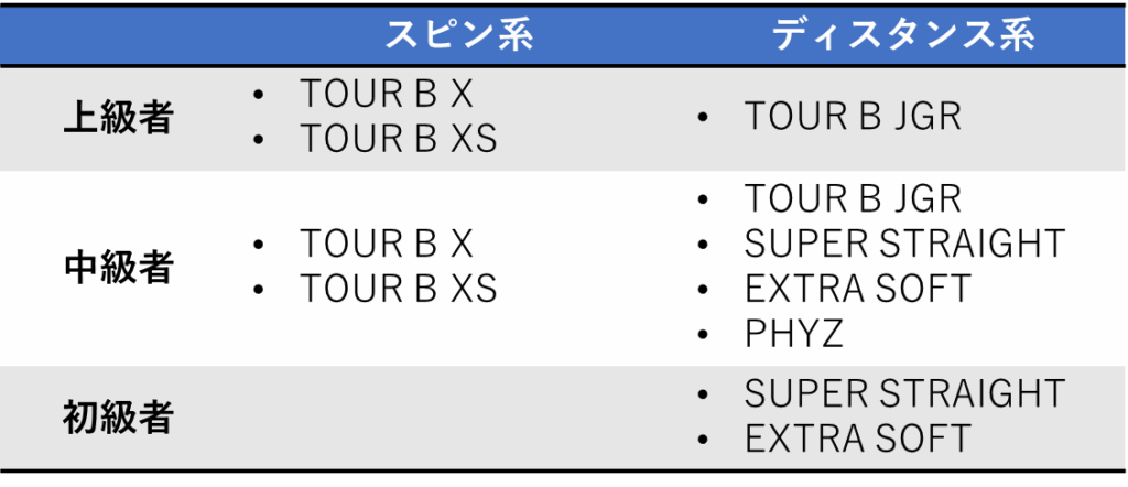| TOUR B JGR Amazon | ![]() | 6,380円 | ディスタンス | 5 | 34~44m/s | 3ピース | 高 | 進化した「弾き」、高初速で飛ばす! |
